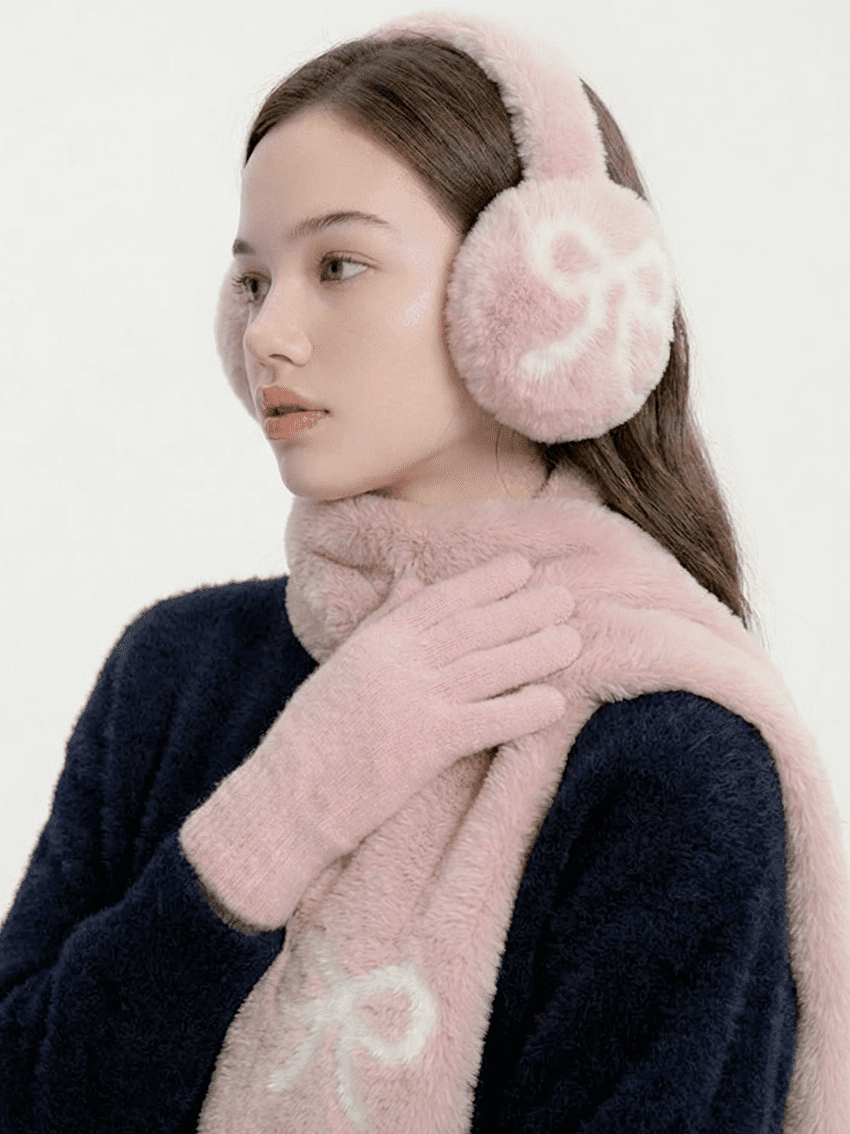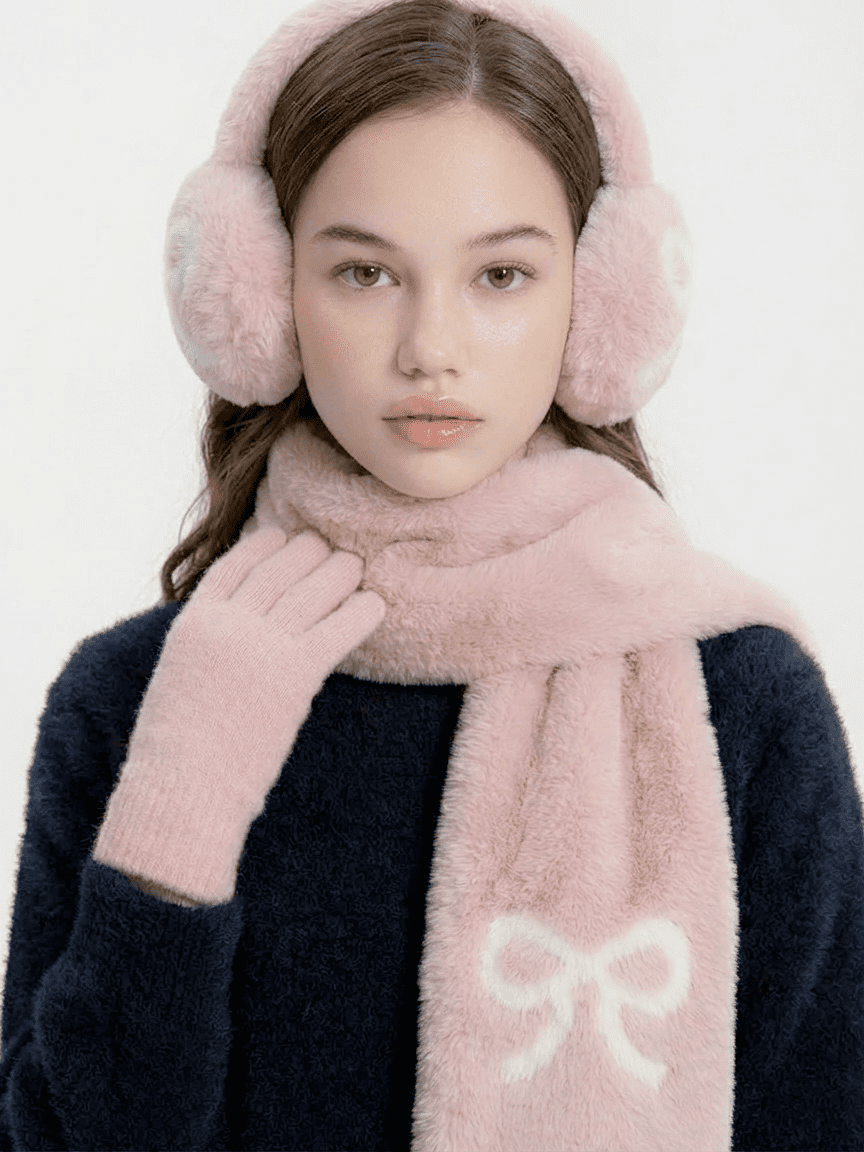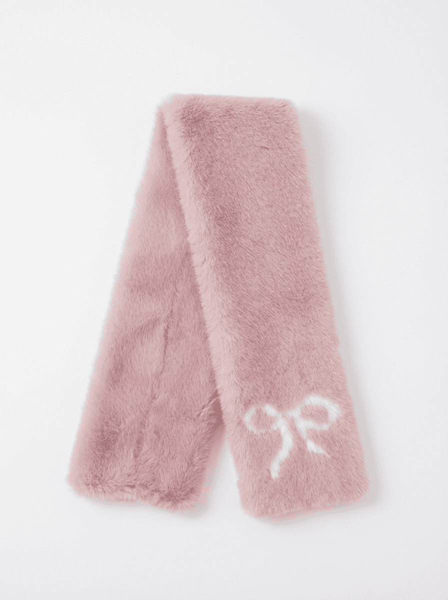 This winter scarf is exquisitely crafted, elegantly colored, and features a cute pink bow design. It complements your clothing style perfectly, making it ideal for cold winter days and offering more styling options.
