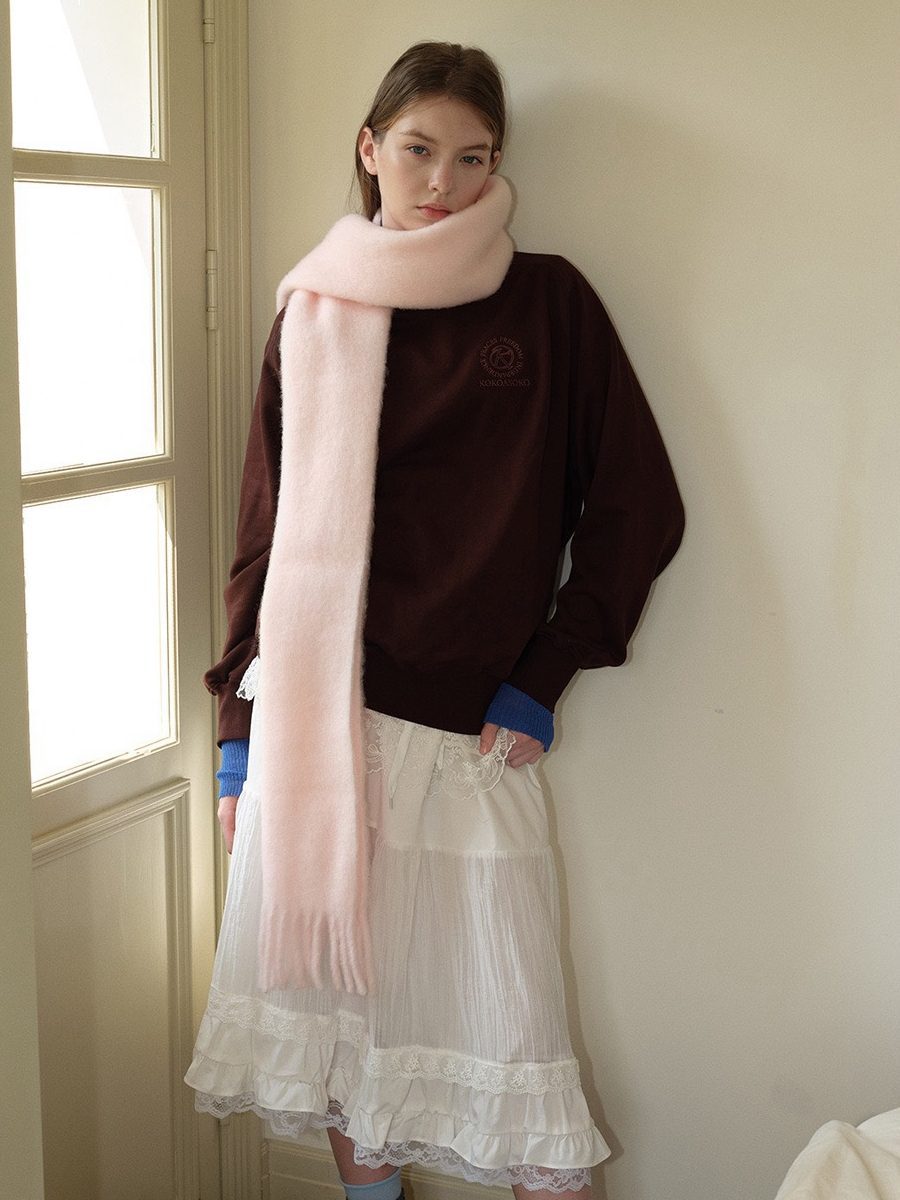 This soft, creamy scarf adds a touch of elegance to winter. It is made from a premium wool blend and knitted with a brushed finish for a soft, warm, and comfortable feel.